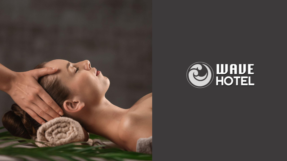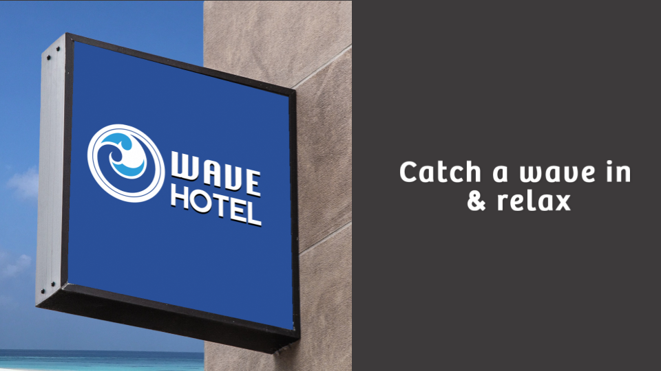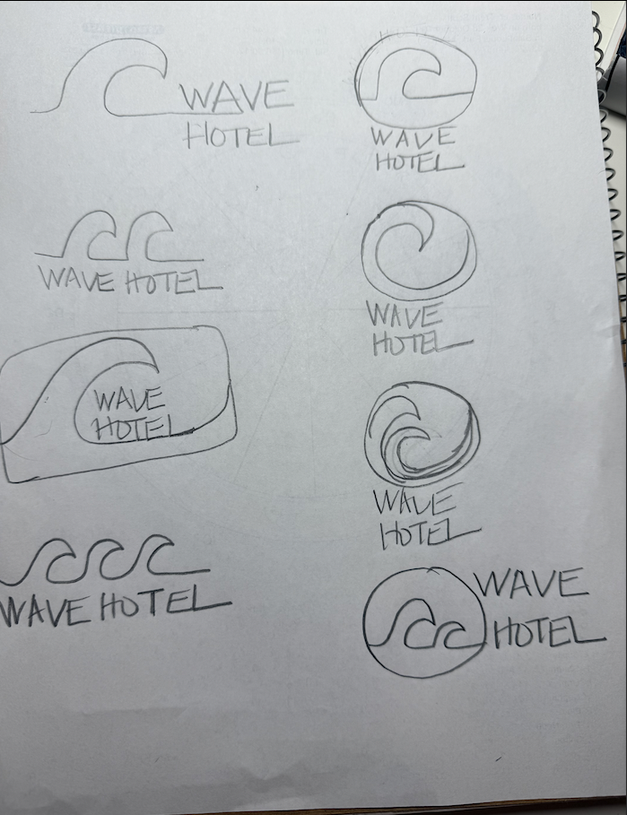 The Wave Hotel logo centers on a dual-wave mark that communicates movement, energy, and coastal connection. I sourced a royalty-free wave icon and adapted it to Wave Hotel's brand through: